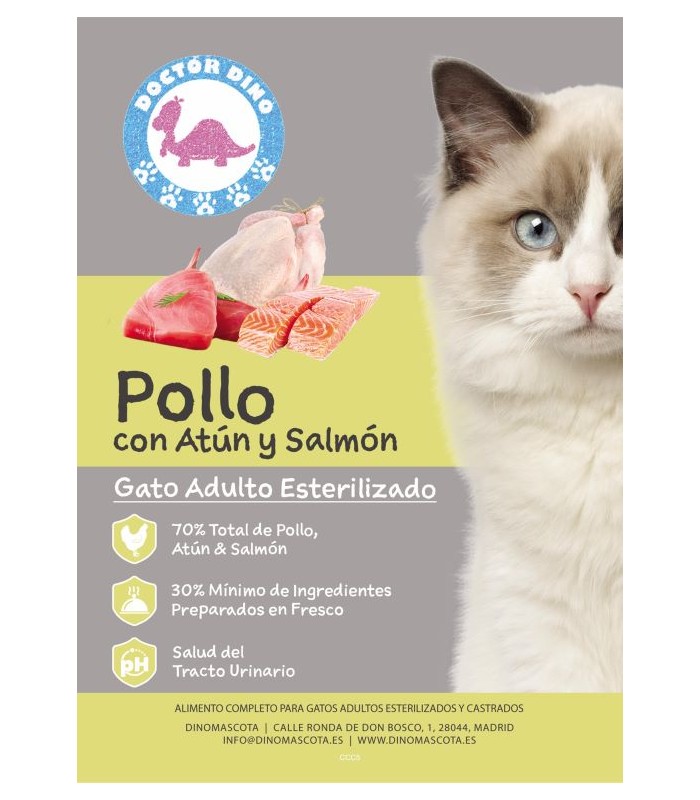DOCTOR DINO GATO ADULT STERILIZED POLLO, ATÚN Y SALMÓN SIN CEREALES 1,5KG